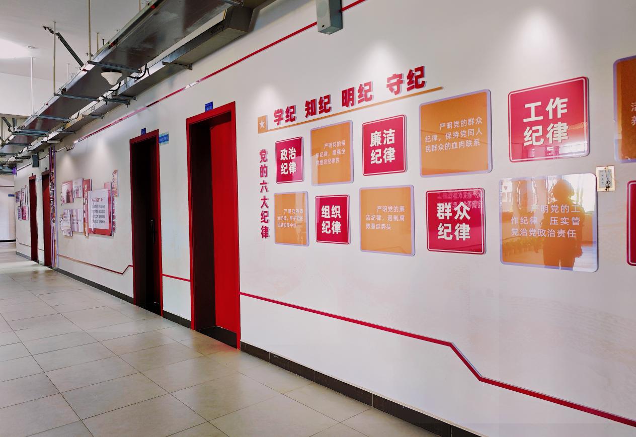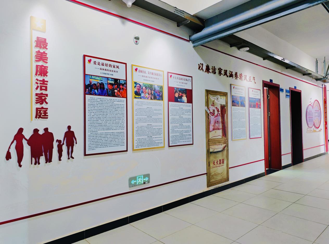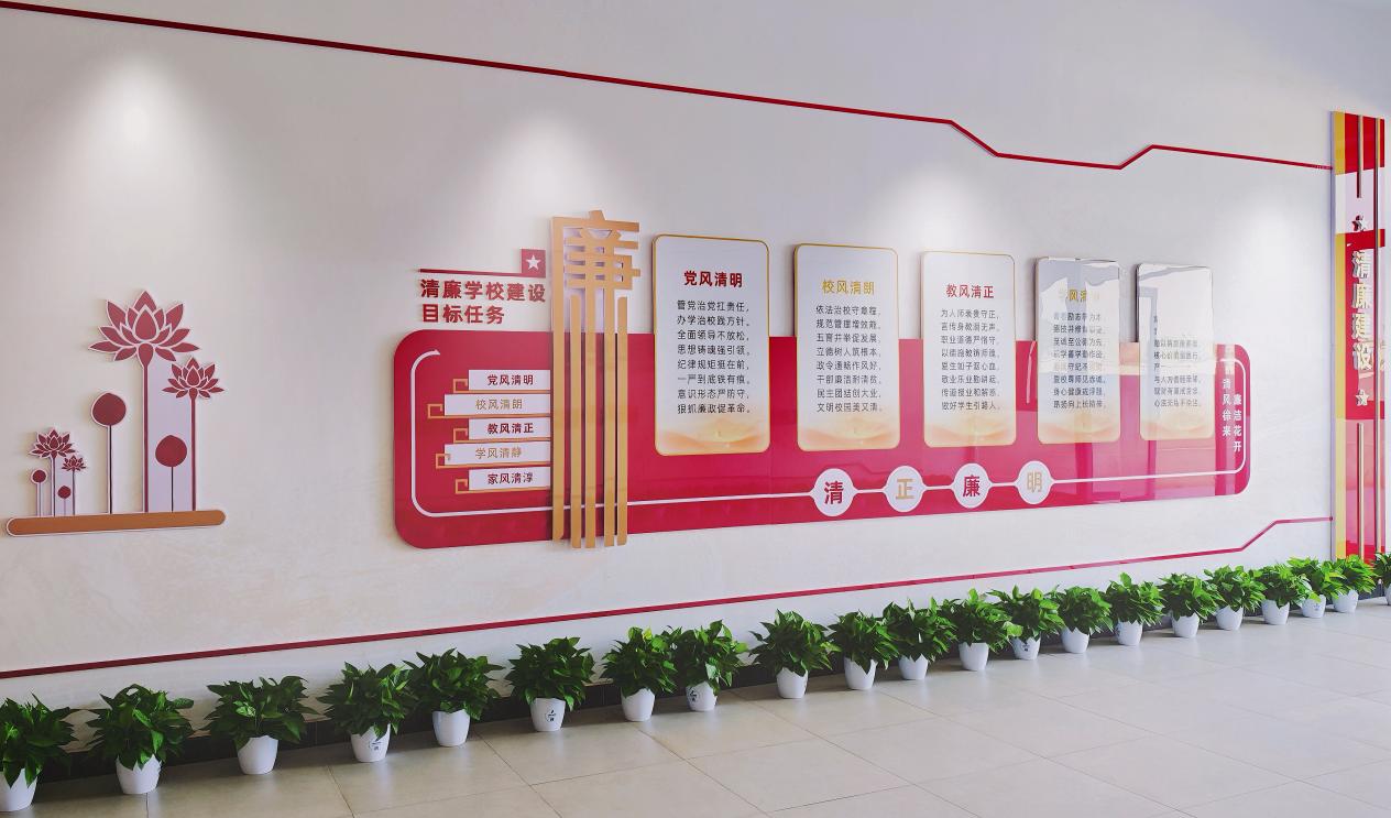 廉洁文化长廊位于北院创新创业楼二楼,墙面施工面积共约500平方米,以红、黄色为主色调,设计精美,格调严肃、高雅。长廊内容以全面从严治党和清廉学校建设为主线,分为“重要论述”“治党方略”“从严治校”“清廉建设”等四大板块,涵盖习近平总书记关于全面从严治党和清廉建设的重要论述,党的政治建设、制度建设、思想建设、作风建设的重要成果和基本概念,近年来学校从严管党治校出台的重大制度、规定,以及学校清廉建设的基本体系等。四大板块主题突出,通过图文并茂的形式,让党员干部、师生员工在抬头驻足间深刻感受新时代全面从严治党和清廉建设的浓厚氛围,在廉洁文化的熏陶中受到启迪,筑牢思想堤坝,永葆清廉本色,达到“润物细无声”的效果。廉洁文化长廊彰显了学校党委从严管党治校的坚强决心,提升了学校的教育本色和文化品位,将成为学校推进廉洁教育的重要载体,也是展示学校形象的一道亮丽风景线。