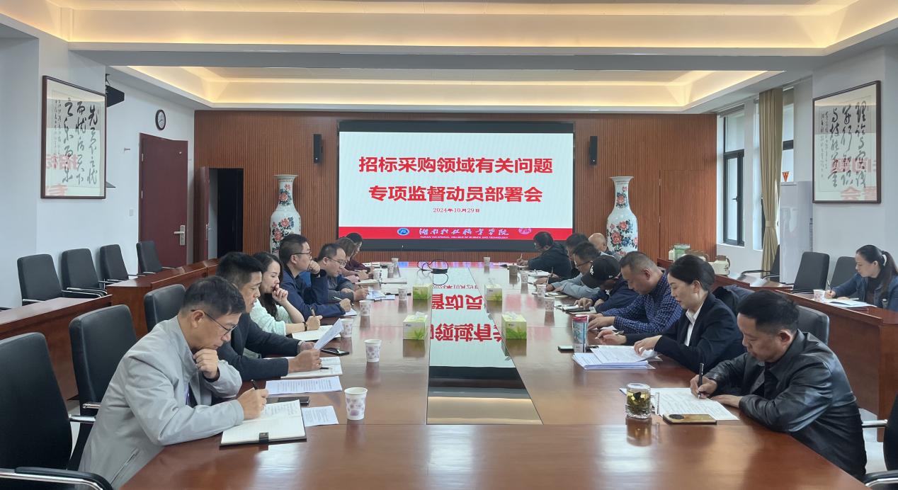 为贯彻落实二十届中央纪委三次全会精神,加强对学校重点领域的监督,进一步规范学校招标采购工作,10月29日下午,学校纪委在天心校区北院组织召开招标采购领域专项监督动员部署会议。副校长程志群出席会议,纪委书记王平主持会议,纪检监察处、党政办公室、国有资产管理处、财务处、审计处、教务处、学生工作部、后勤处、基建处、网络安全与信息技术中心等部门主要负责人参加会议。