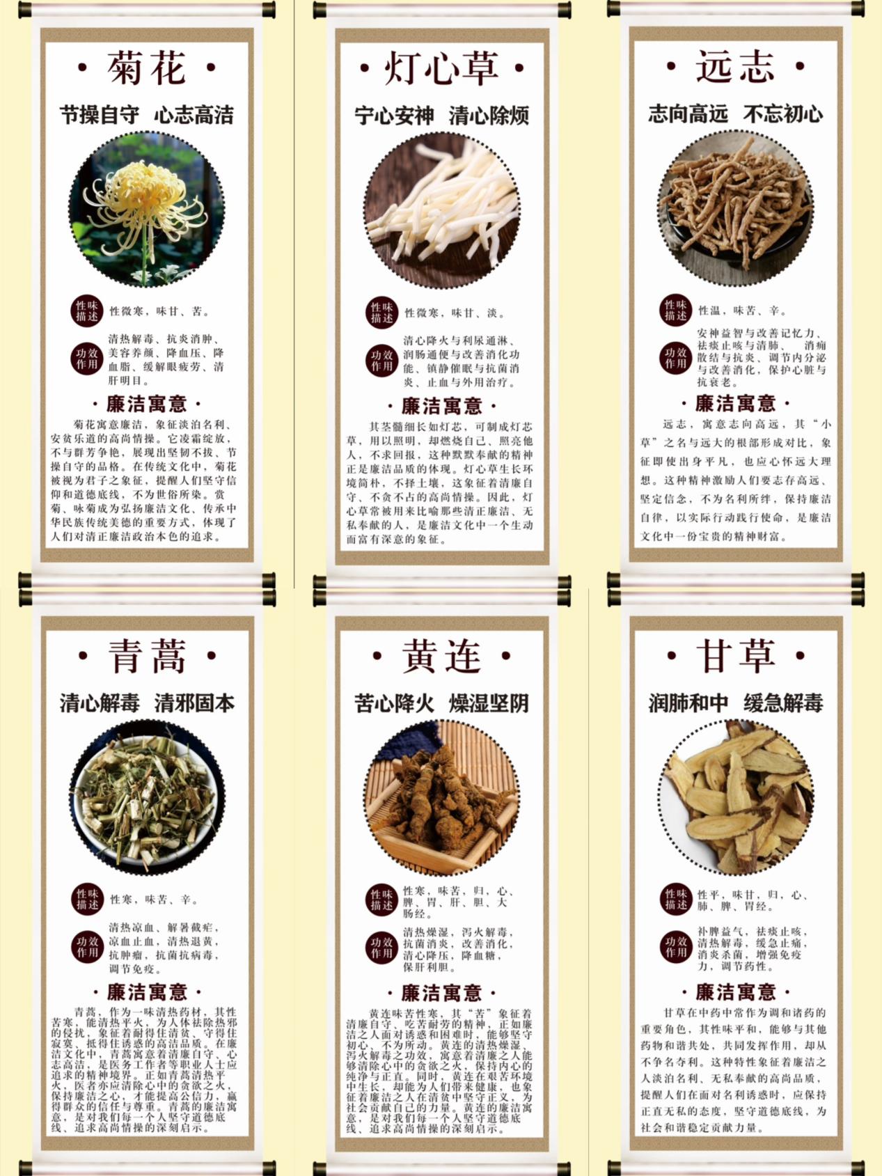 深挖中医药文化中的“廉洁基因”,选取生活中常见的决明子、茯苓、甘草等多种中药材,向大家科普中药知识的同时又根据其药性、药理、药效作用,巧妙挖掘中药背后的廉洁寓意,在传播专业医药知识的同时推动廉洁文化的宣传与实践,育人“润物细无声”。