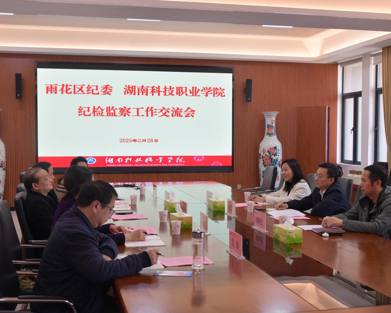 2月28日下午,雨花区区委常委、纪委书记、监委主任钟孝明率队来我校考察调研。学校党委副书记、校长蒋阳飞,党委委员、纪委书记王平及部分纪委委员和纪检监察处全体干部陪同调研并参加座谈交流。