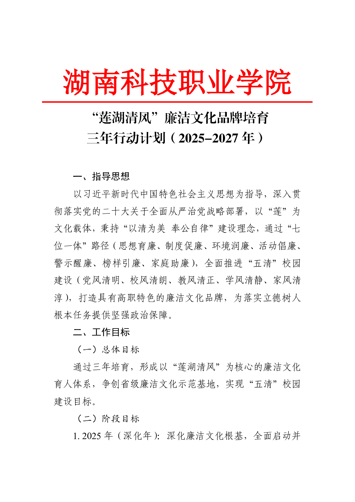湖南科技职业学院“清风四季”常态化廉洁教育行动方案