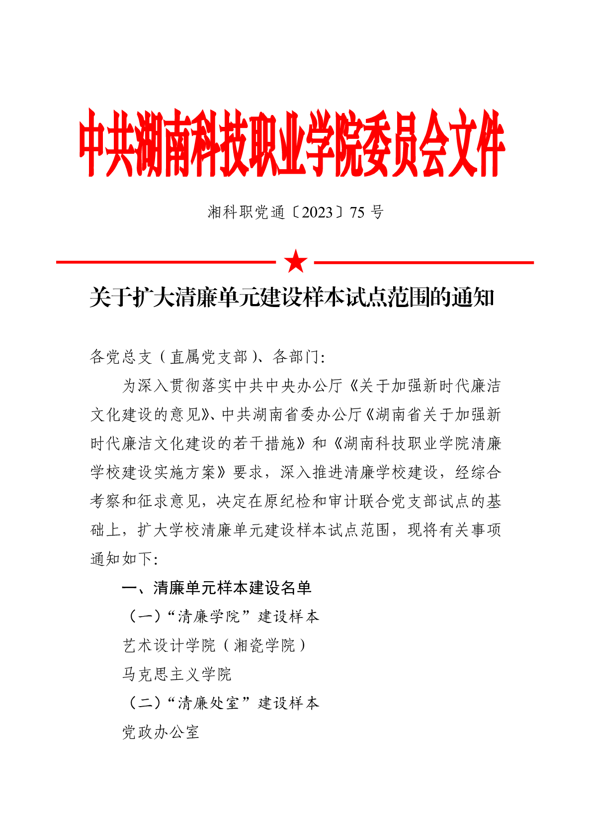 关于扩大清廉单元建设样本试点范围的通知