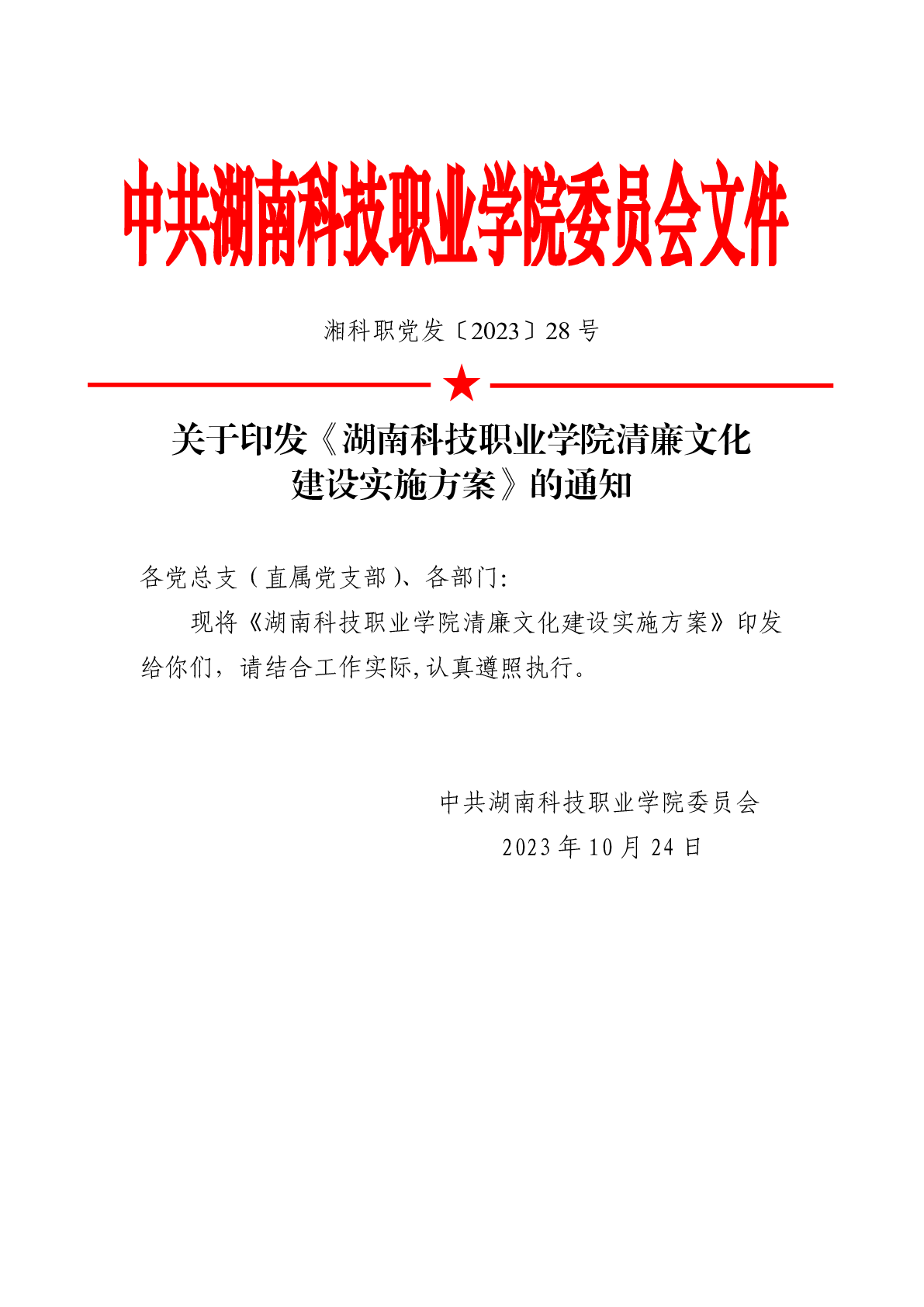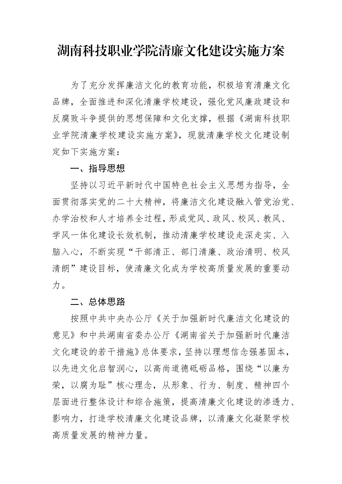 湖南科技职业学院清廉文化建设实施方案