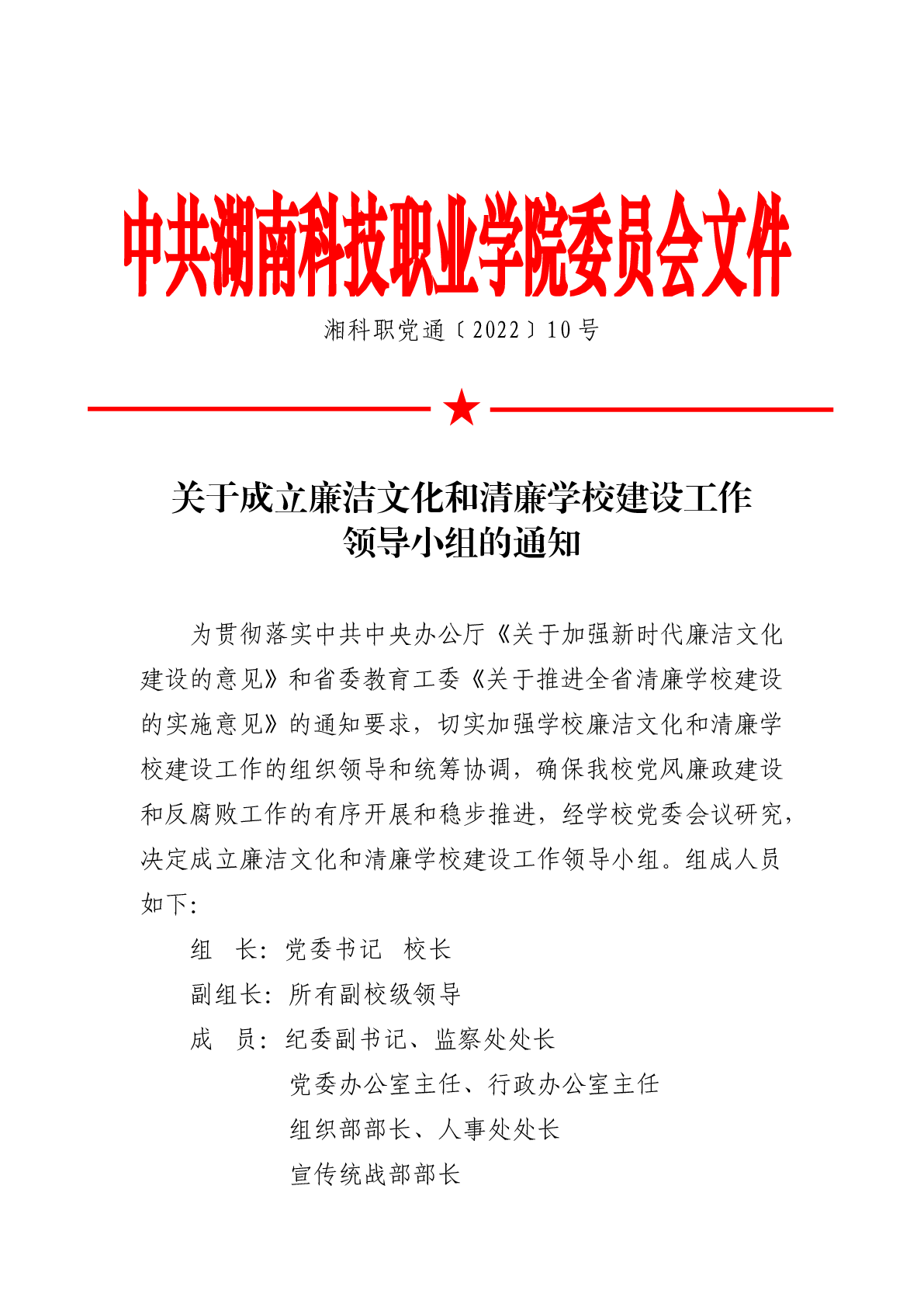 关于成立廉洁文化和清廉学校建设工作领导小组的通知