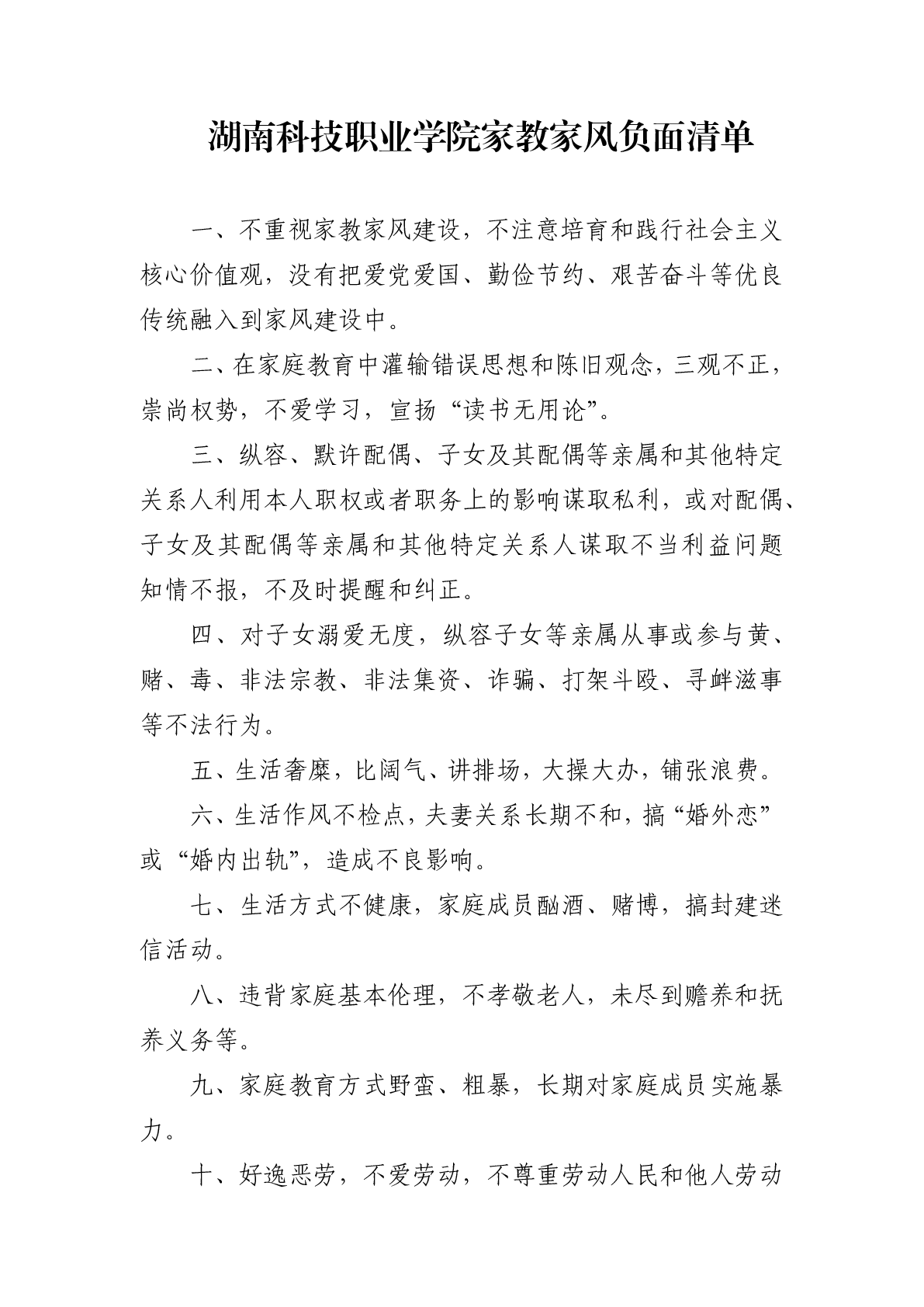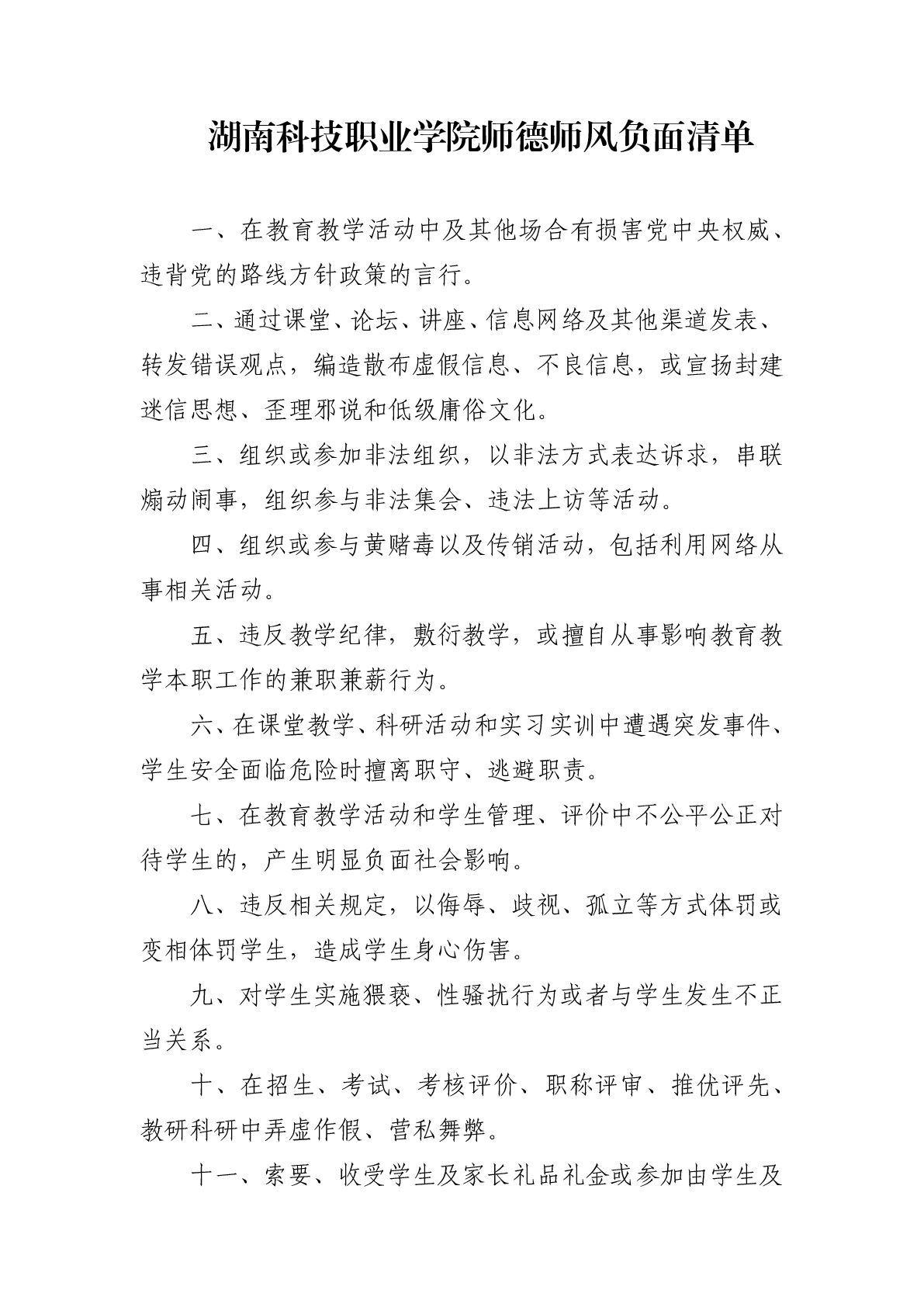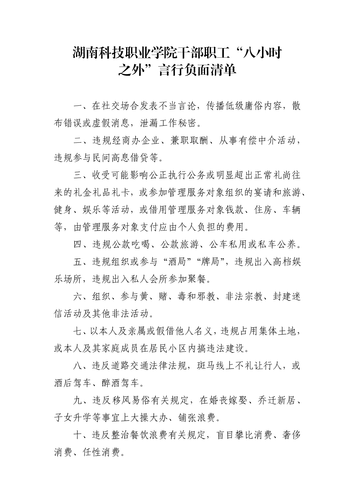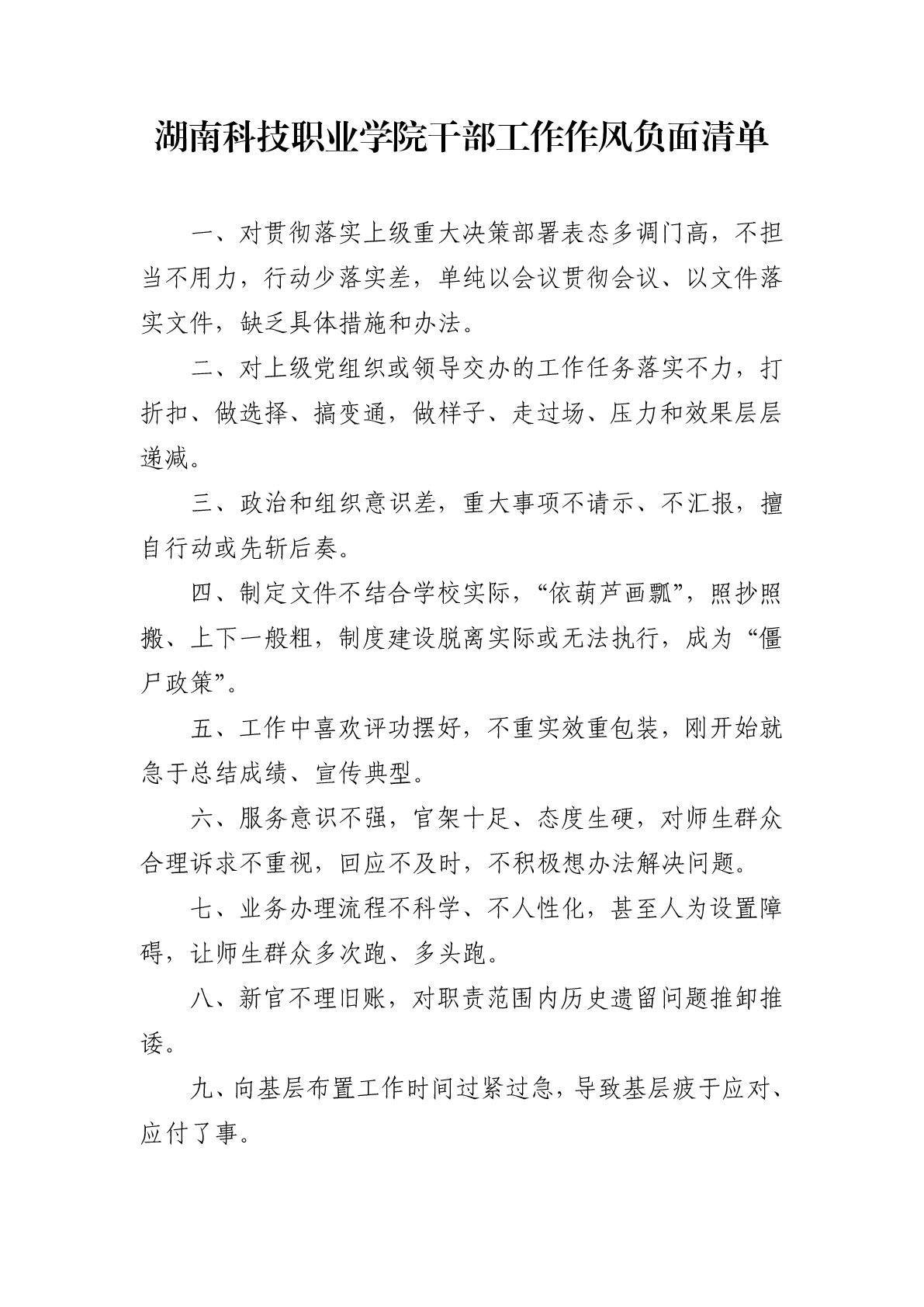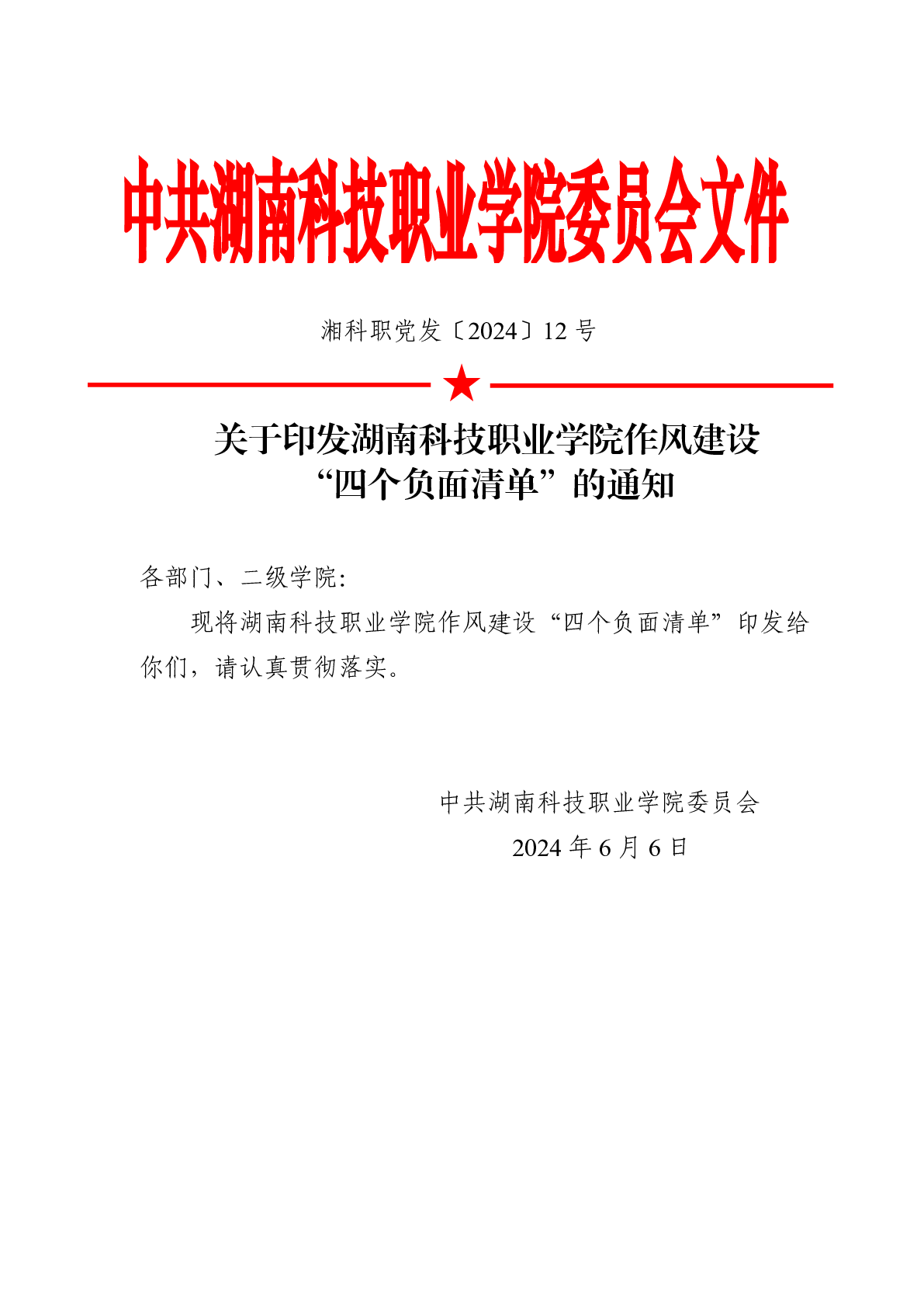 关于印发湖南科技职业学院作风建设“四个负面清单”的通知