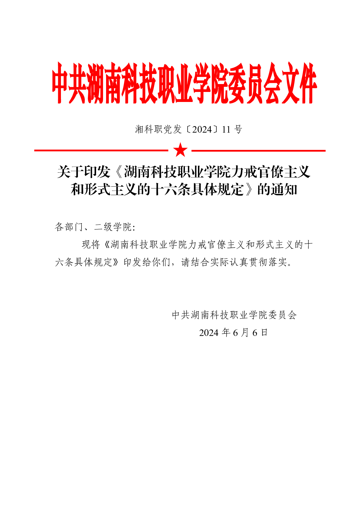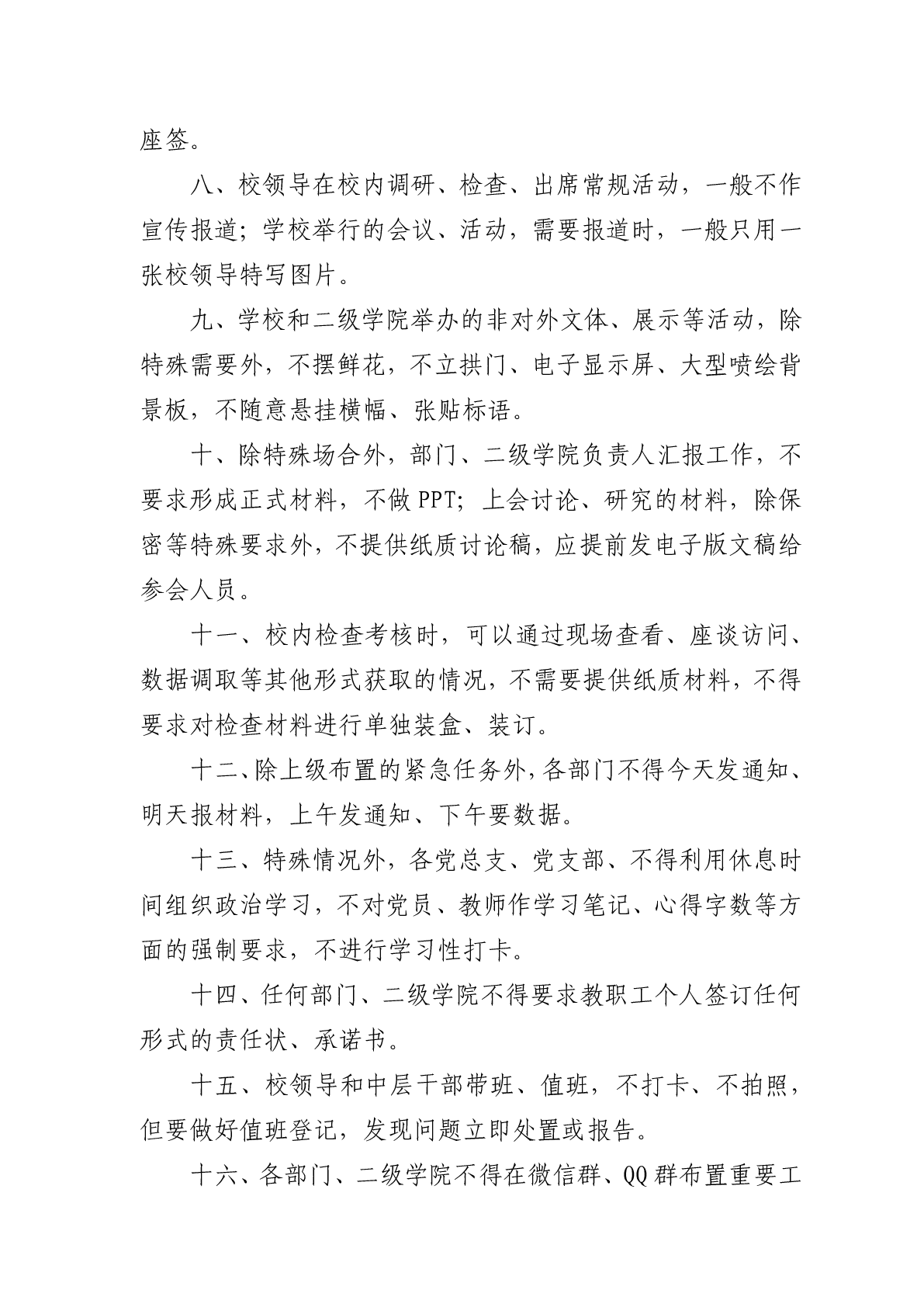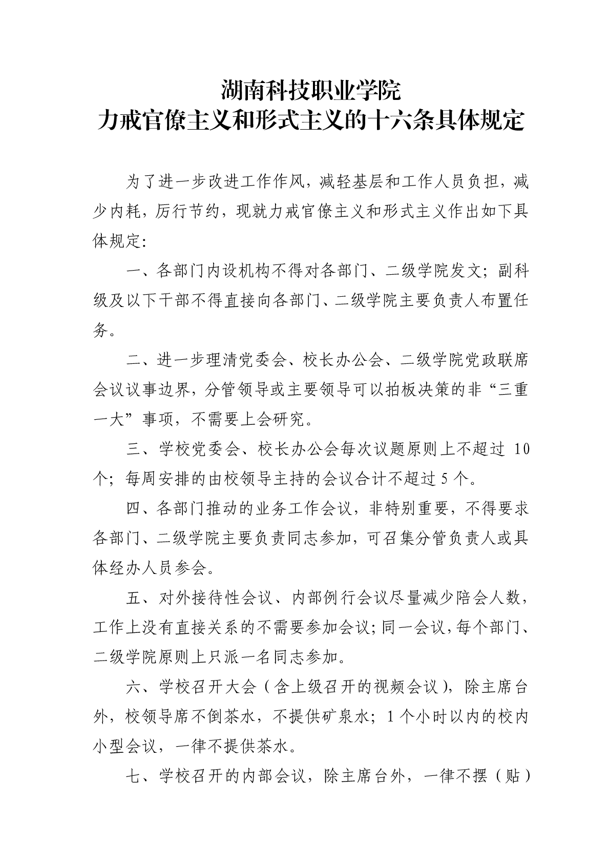 湖南科技职业学院力戒官僚主义和形式主义的十六条具体规定