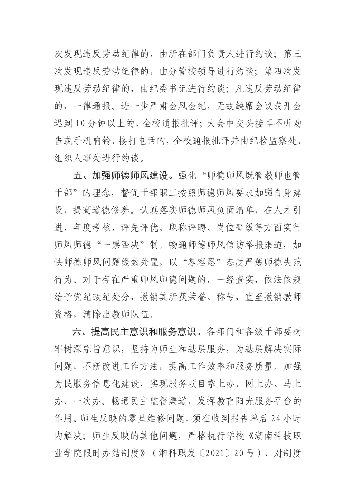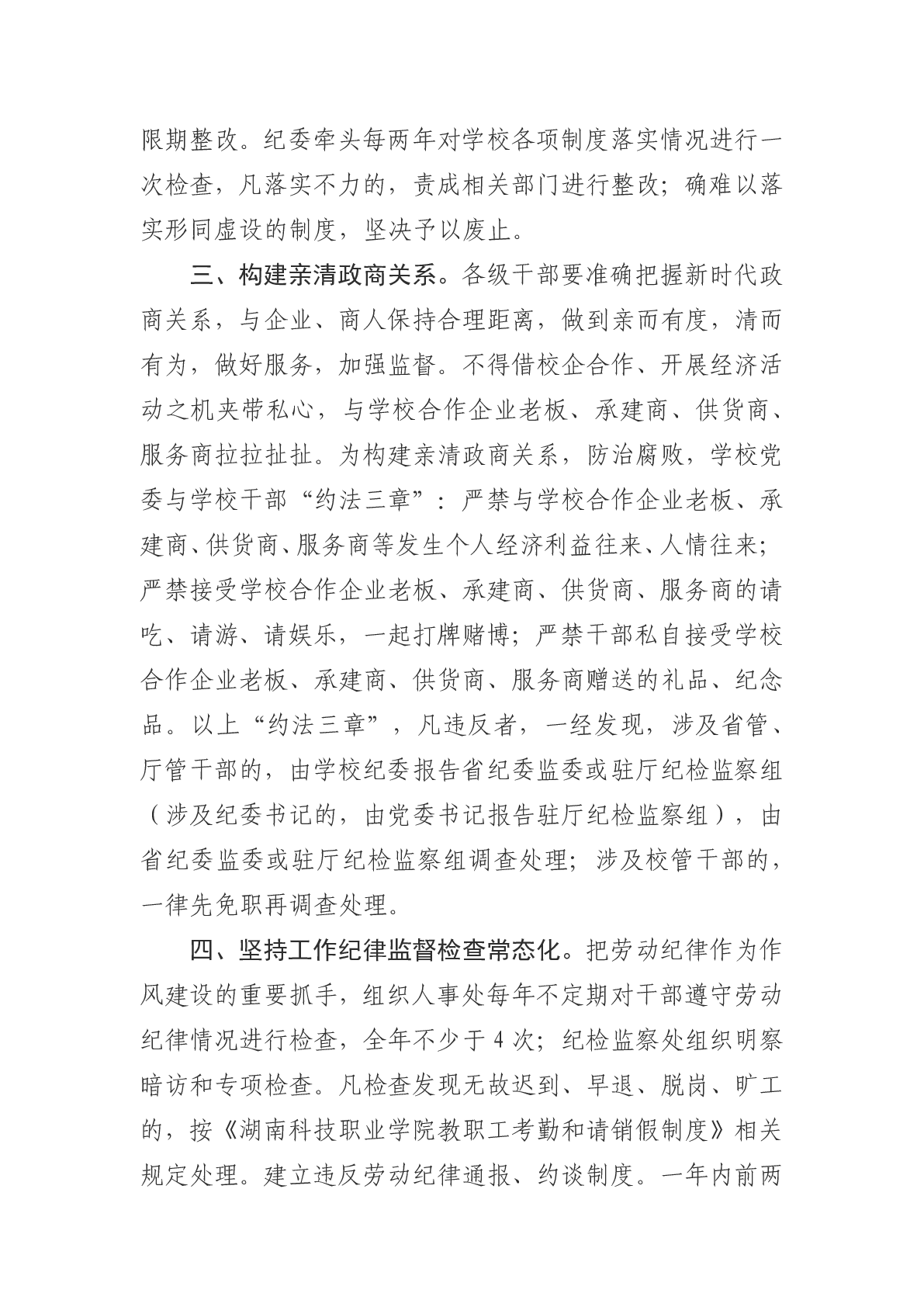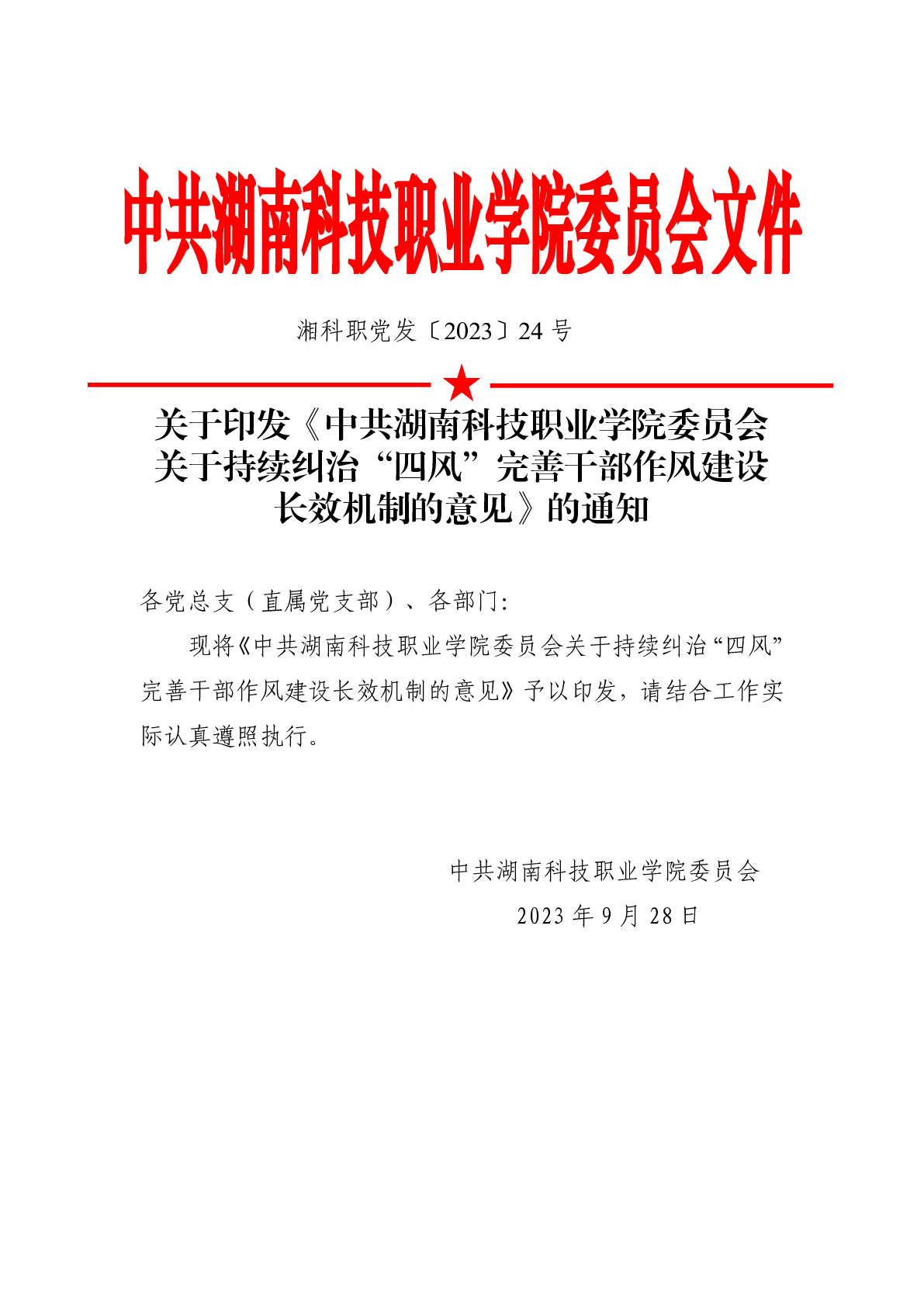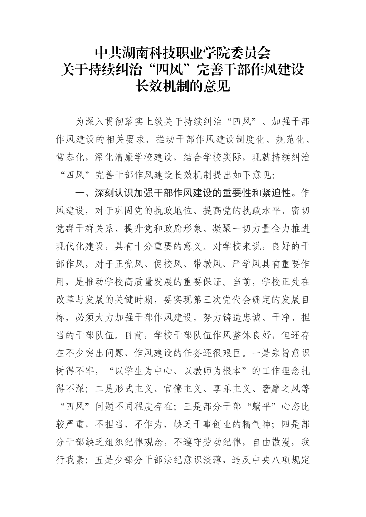 中共湖南科技职业学院委员会关于持续纠治“四风”完善干部作风建设长效机制的意见